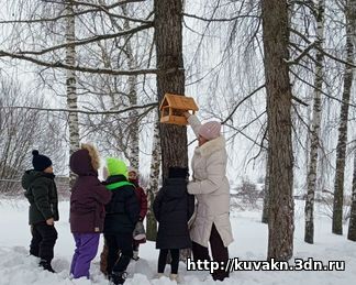 Ребята довели начатое до конца, развесили кормушки на школьном дворе и покормили птиц.